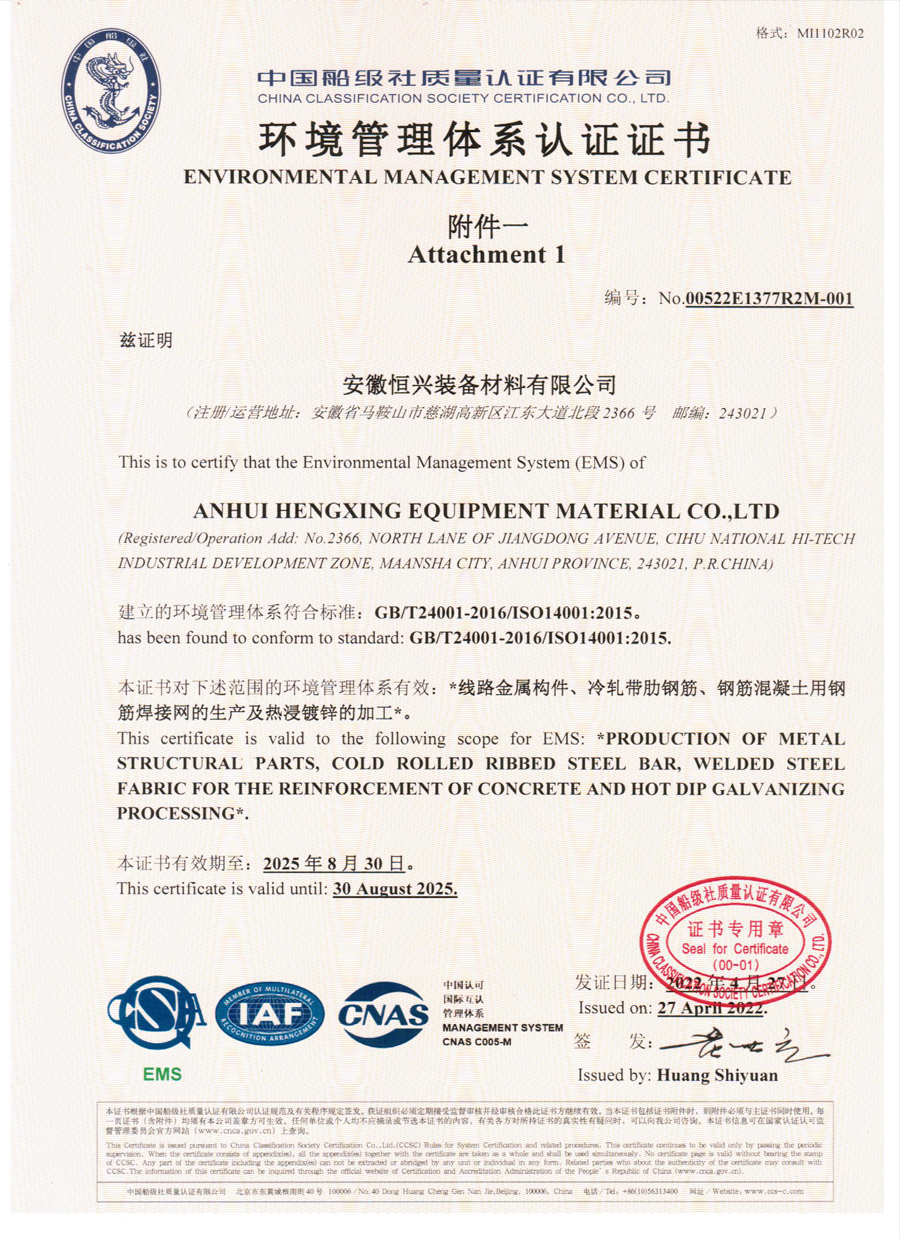• 恒興環(huán)境認證